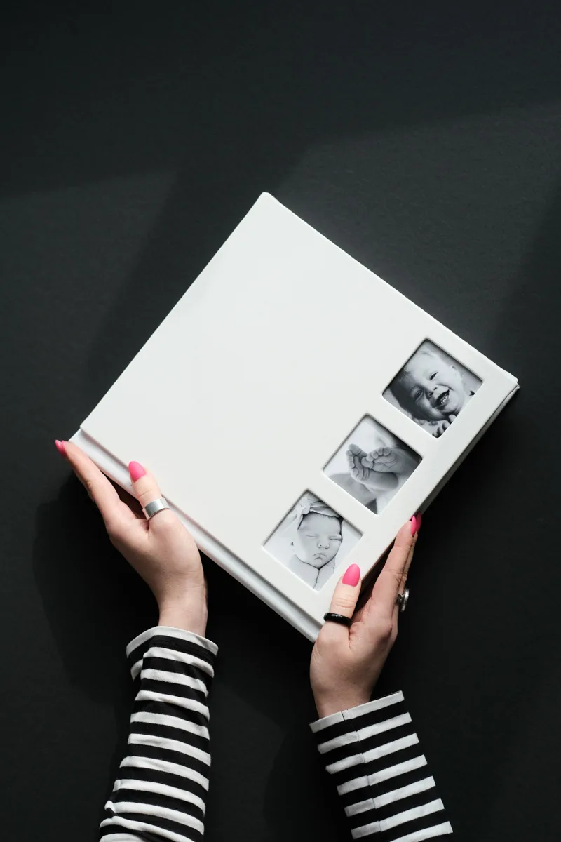 Création d’un album personnalisé. Je prends le temps de vous conseiller, de choisir les matériaux, de créer un design sur mesure selon votre histoire.