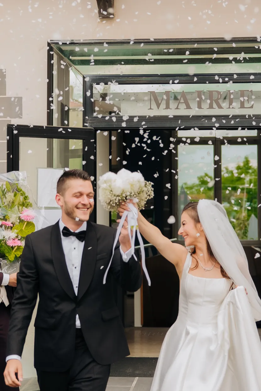 Cette formule comprend la couverture de la cérémonie civile à la mairie, suivie d’une courte séance photo de couple (environ 2 heures au total).